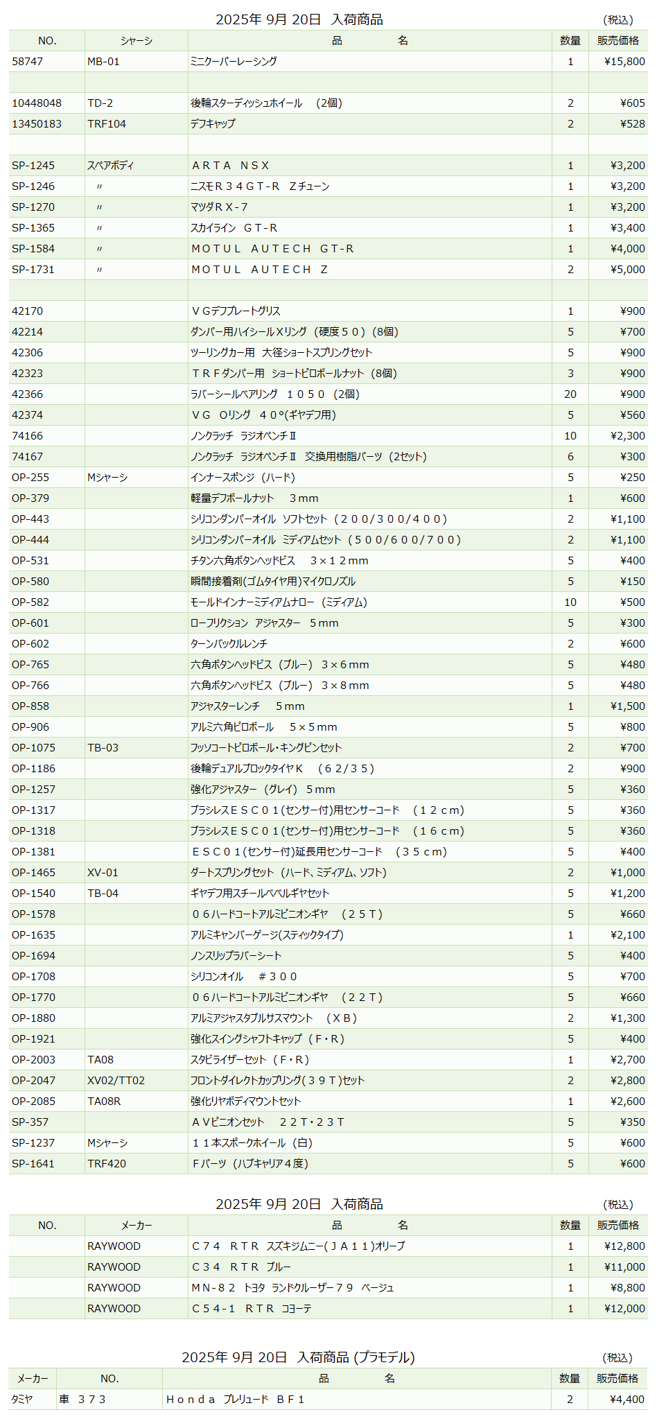 HUDYセットアップツールセット1/10ツーリング用が入荷しました