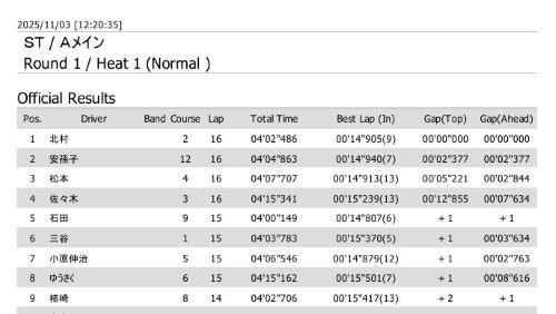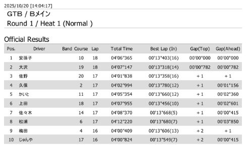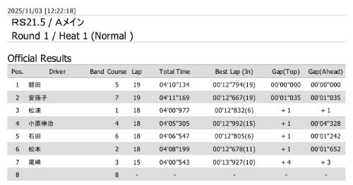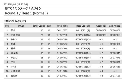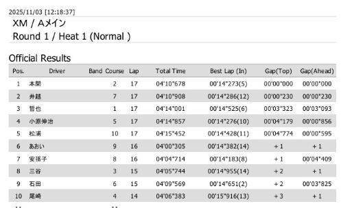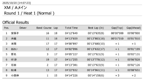 念願のAメイン進出目指して最後の予選、ほぼ満点の走りで逆転。Aメイン進出を決めました。