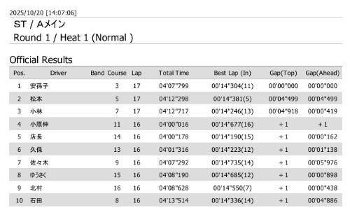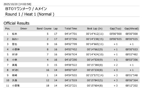 本間選手がそのまま逃げ切って優勝。2位にはあおい選手、3位には梅田選手が入りました。