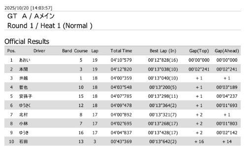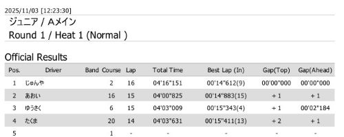 ゆうき選手、最後の予選はいきなり会心の走り。いかにもゆうきっぽい(笑)。